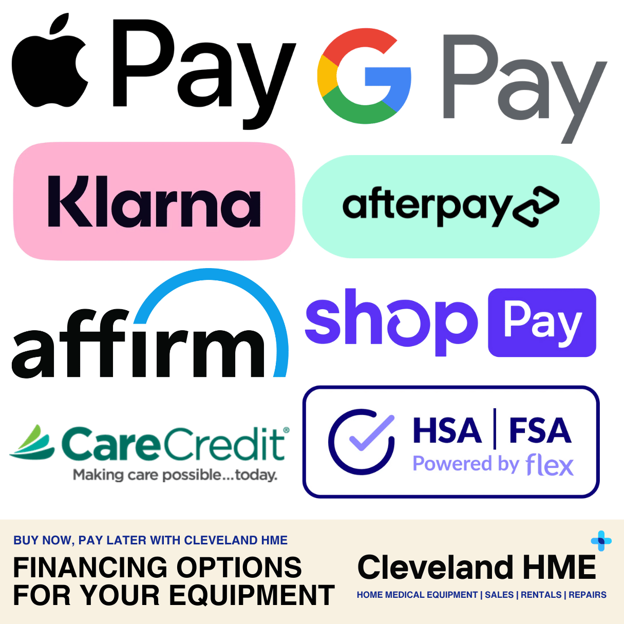 We offer more ways to pay than almost any other DME provider in Cleveland. Whether you want a standard monthly installment plan or wish to use your healthcare savings, we have you covered.