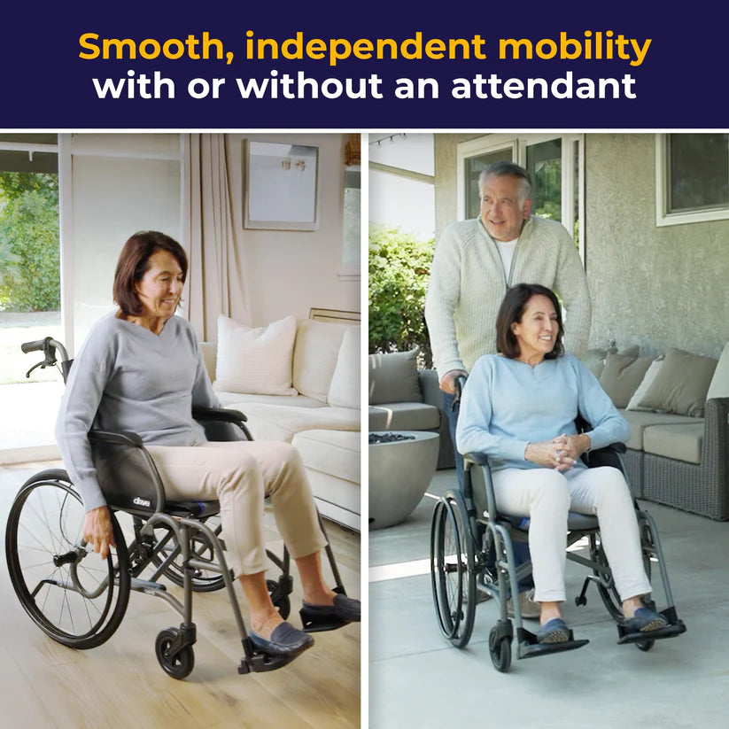 - Includes both attendant brakes and wheel locks for assisted or independent use