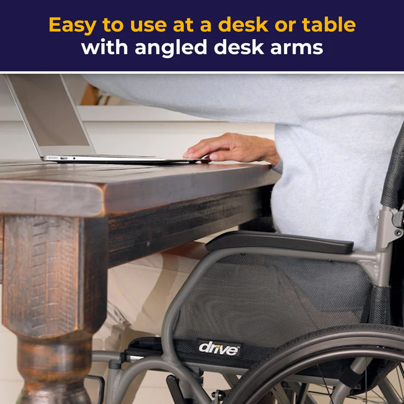 - Fixed, desk length arms with molded armrest pads for comfort and durability