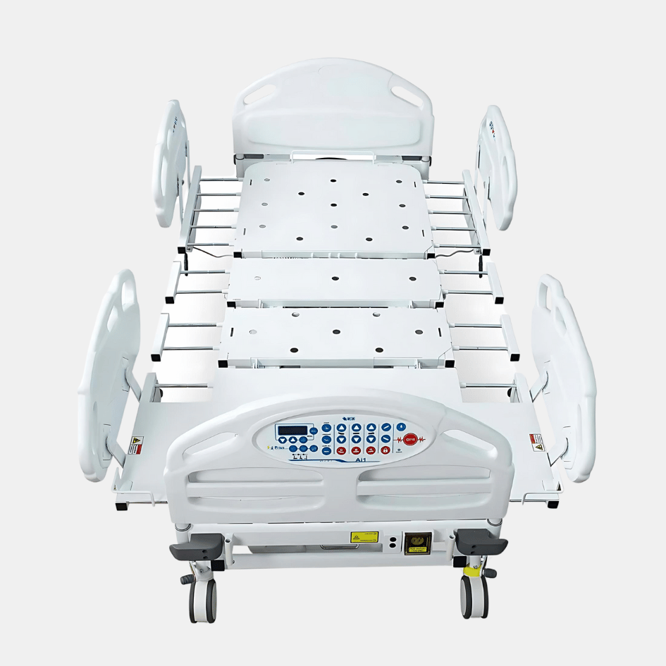 The Ai1 Premium Expandable Low Bed is a state-of-the-art hospital bed designed for patient comfort, safety, and caregiver convenience.