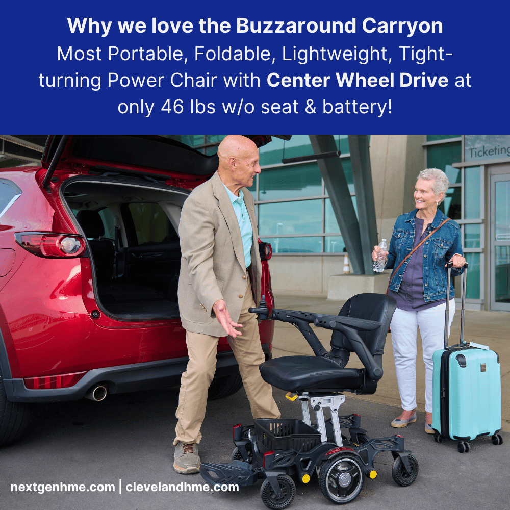The Buzzaround CarryOn, by Golden Technologies, is a portable power wheelchair designed for enhanced mobility and independence.