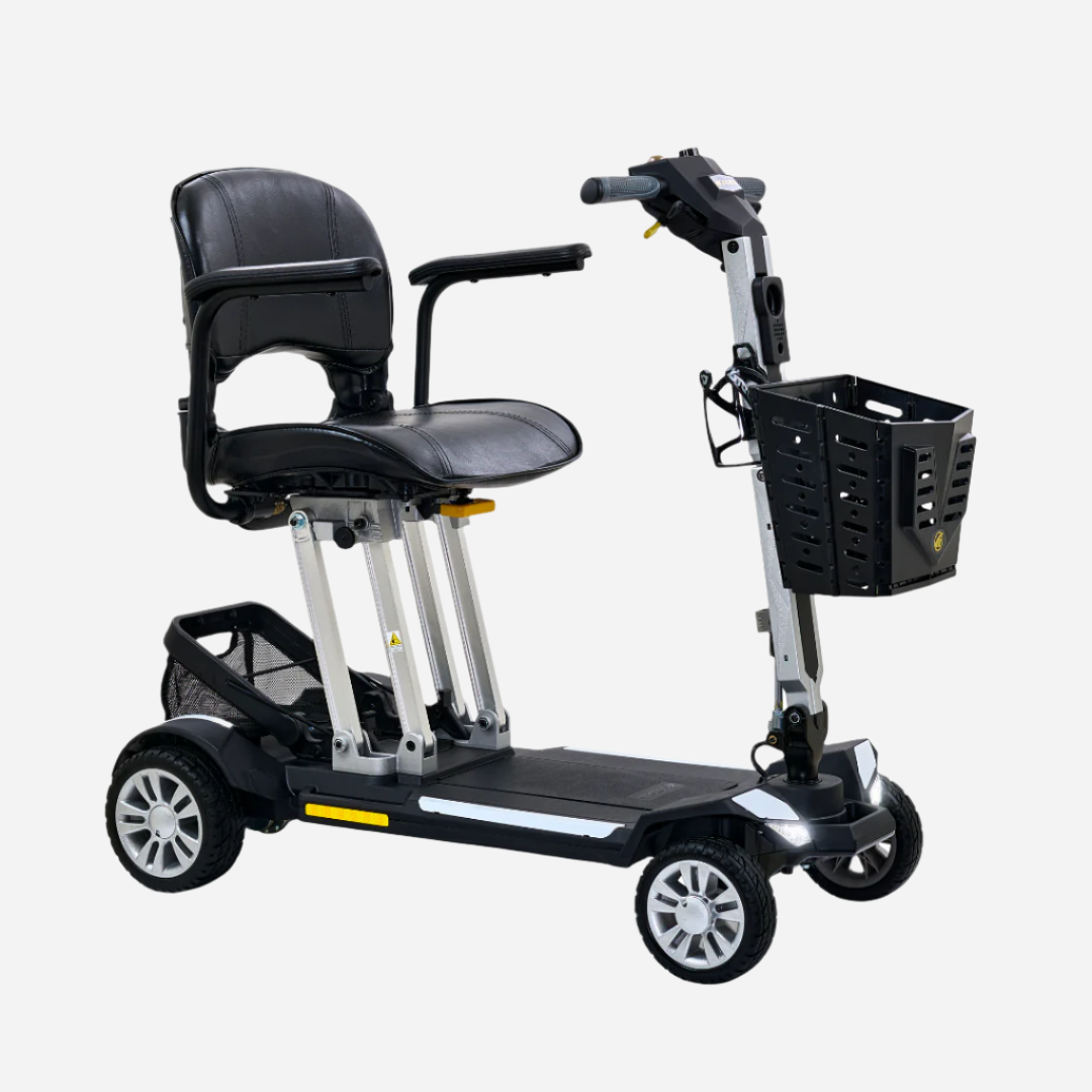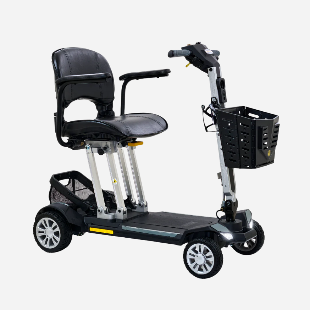 - Lightweight and portable, the Buzzaround CarryOn folds to just 12” in height, making it easy to store in tight spaces.