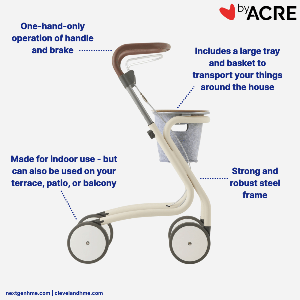 byAcre Scandinavian Butler Indoor Rollator with Tray and Basket