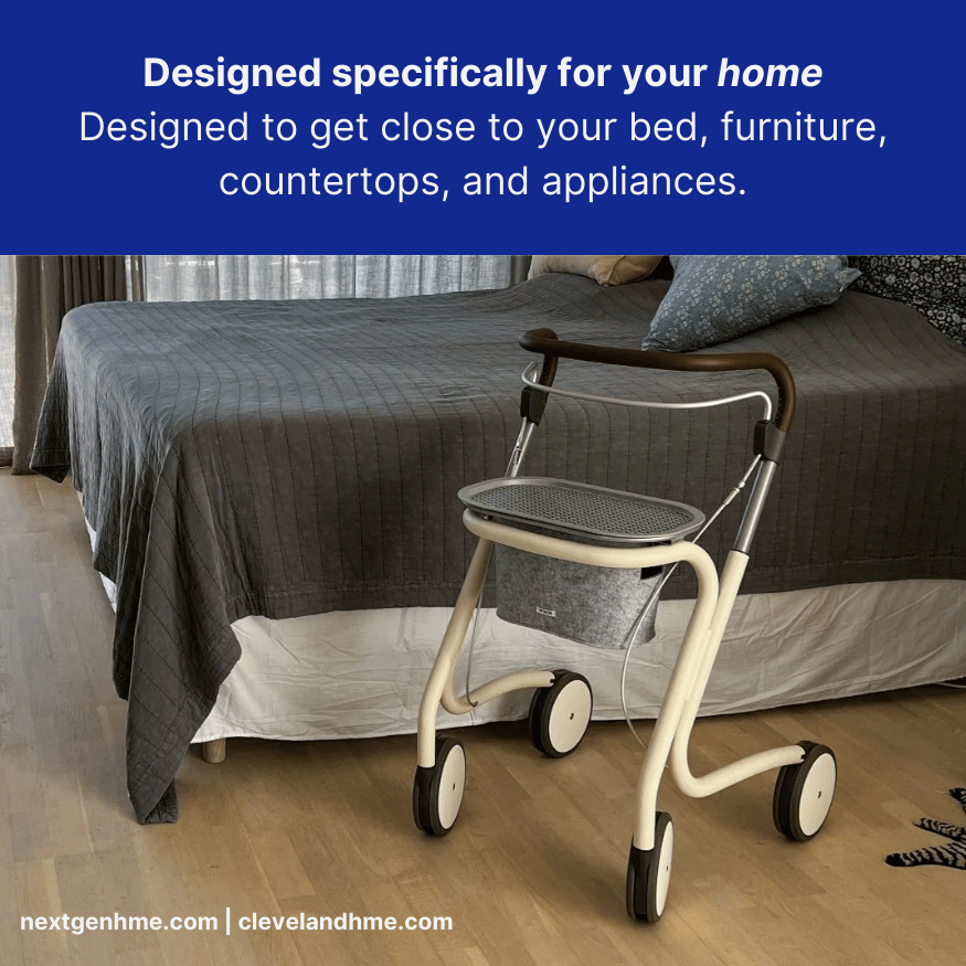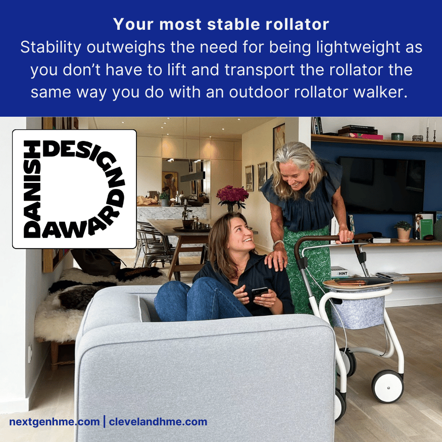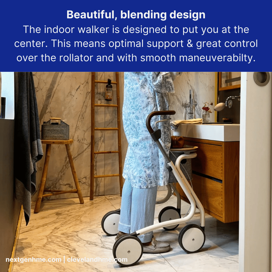 The design of the rollator walker draws on the traditions from Scandinavian furniture design, where sleek lines, craftsmanship and a classic look is essential.