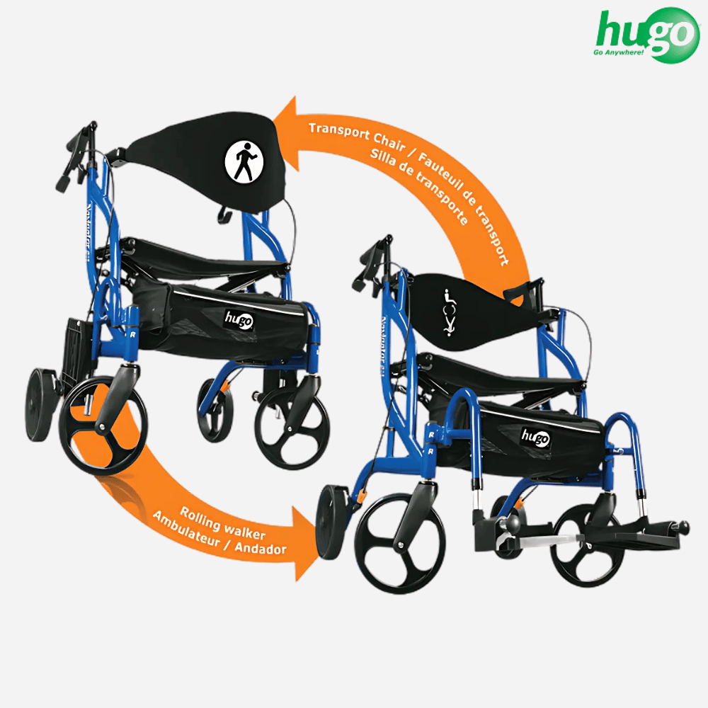 The Hugo Navigator by Drive Medical allows you to remain independent, by providing a lightweight design with unparalleled stability that gives you the confidence needed to go anywhere. And if you need to rest, it easily converts from a rollator to a full transport chair so a loved one can help bring you back home in comfort and style.
