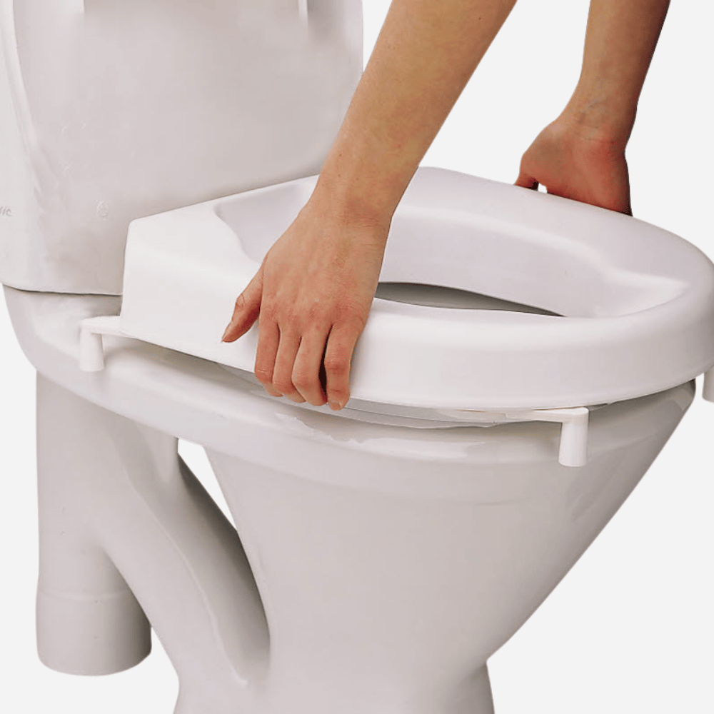 The Etac Hi-Loo with Brackets is a stable and ergonomically designed raised toilet seat that offers secure support while maintaining comfort and ease of use. The seat is contoured for a natural sitting position and features front and rear recesses for improved access during personal hygiene. Available in 2½" and 4" heights, with or without a lid, the Hi-Loo attaches securely to most toilet bowls using adjustable friction-fit brackets.