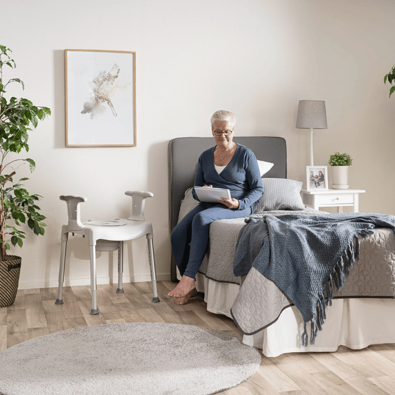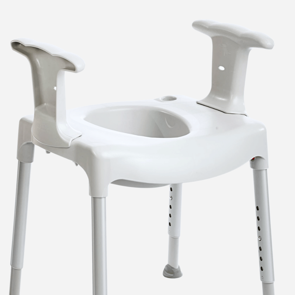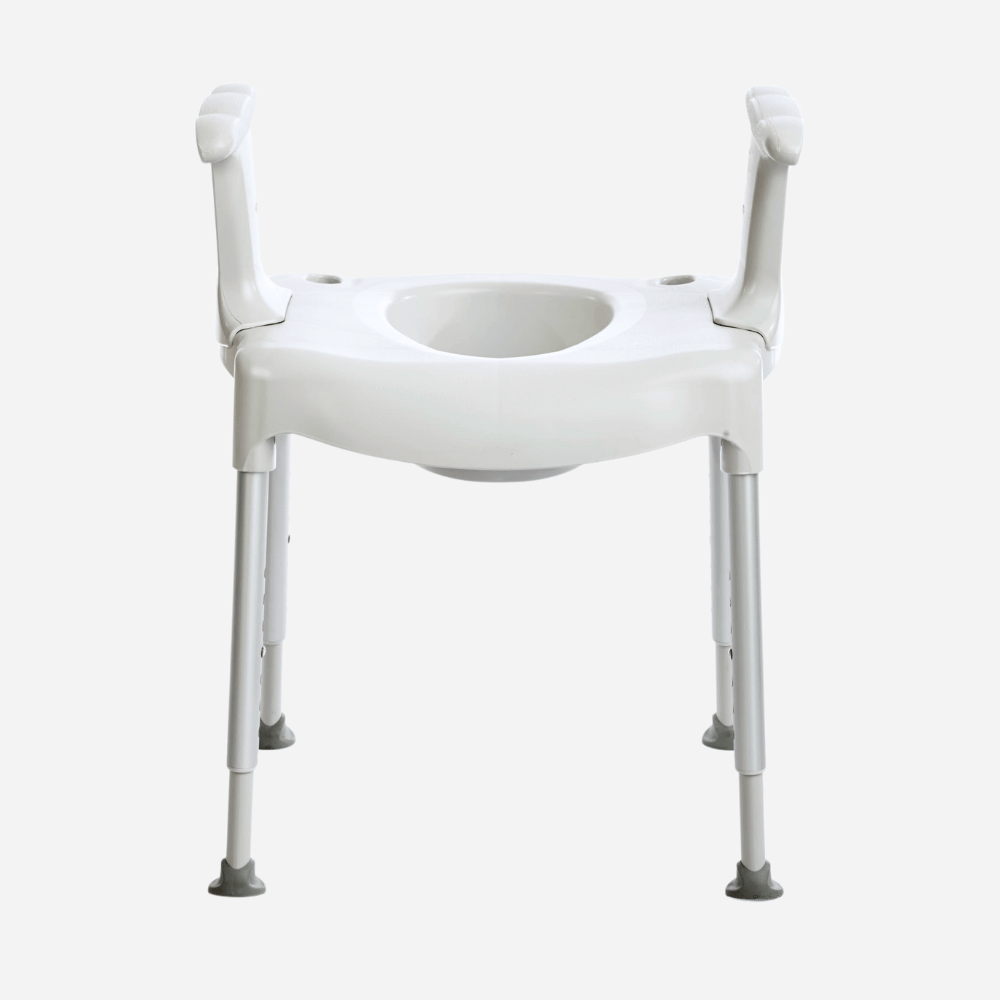 Beyond its primary function as a toilet seat raiser, the Swift Freestanding can also serve as a shower stool or commode when paired with optional accessories. It features non-slip ferrules that adapt to uneven surfaces, ensuring a secure and stable user experience.