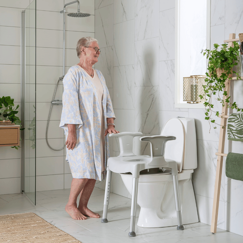 The Etac Swift Freestanding Toilet Seat Raiser is a versatile, height-adjustable support solution designed to enhance bathroom safety and accessibility.