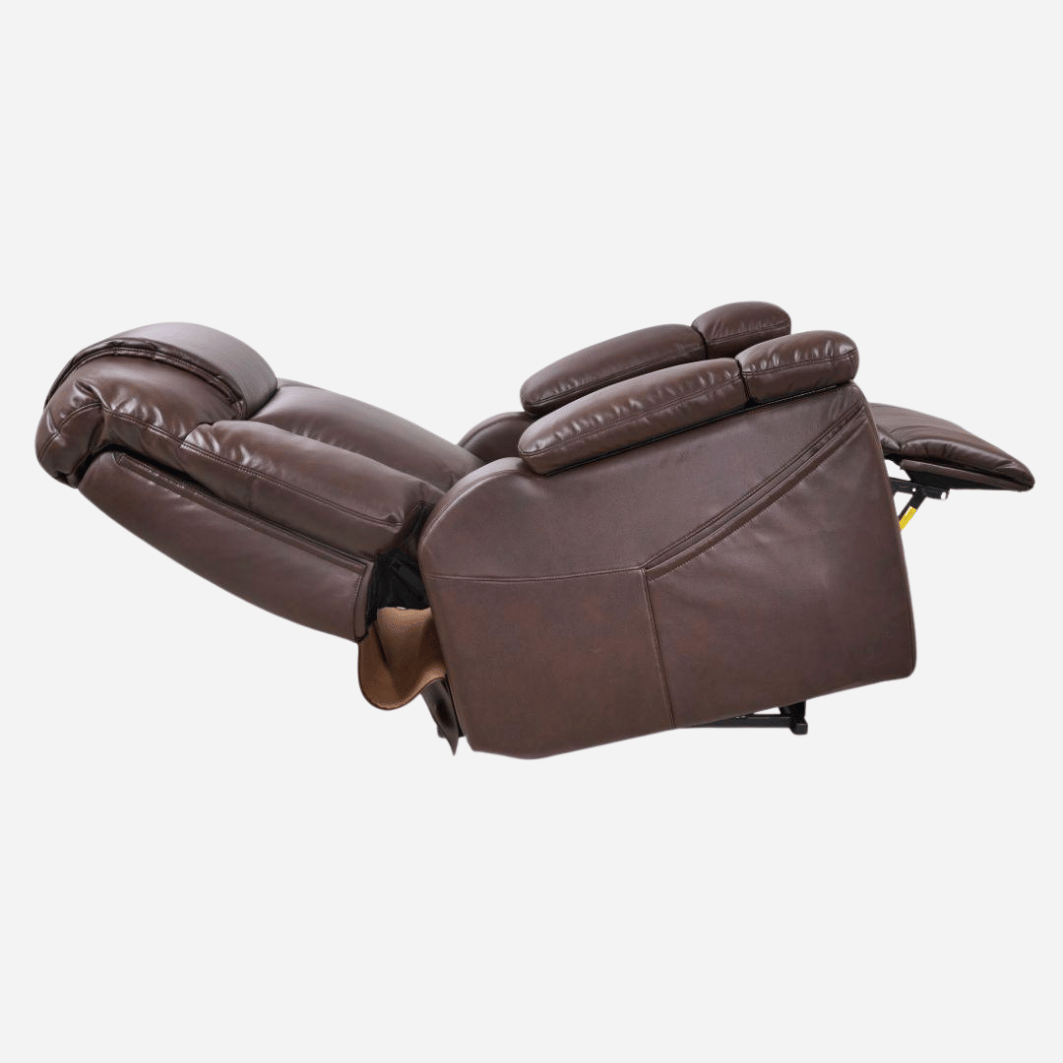 The Rhea offers an overstuffed seam back design, plush chaise pad and an open arm design that holds numerous standard features including a power port + LED reading light, cup holder, two storage compartments, and a USB port.