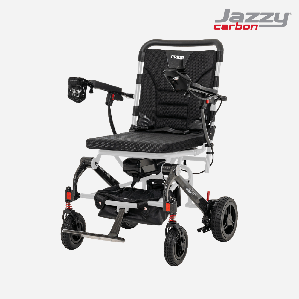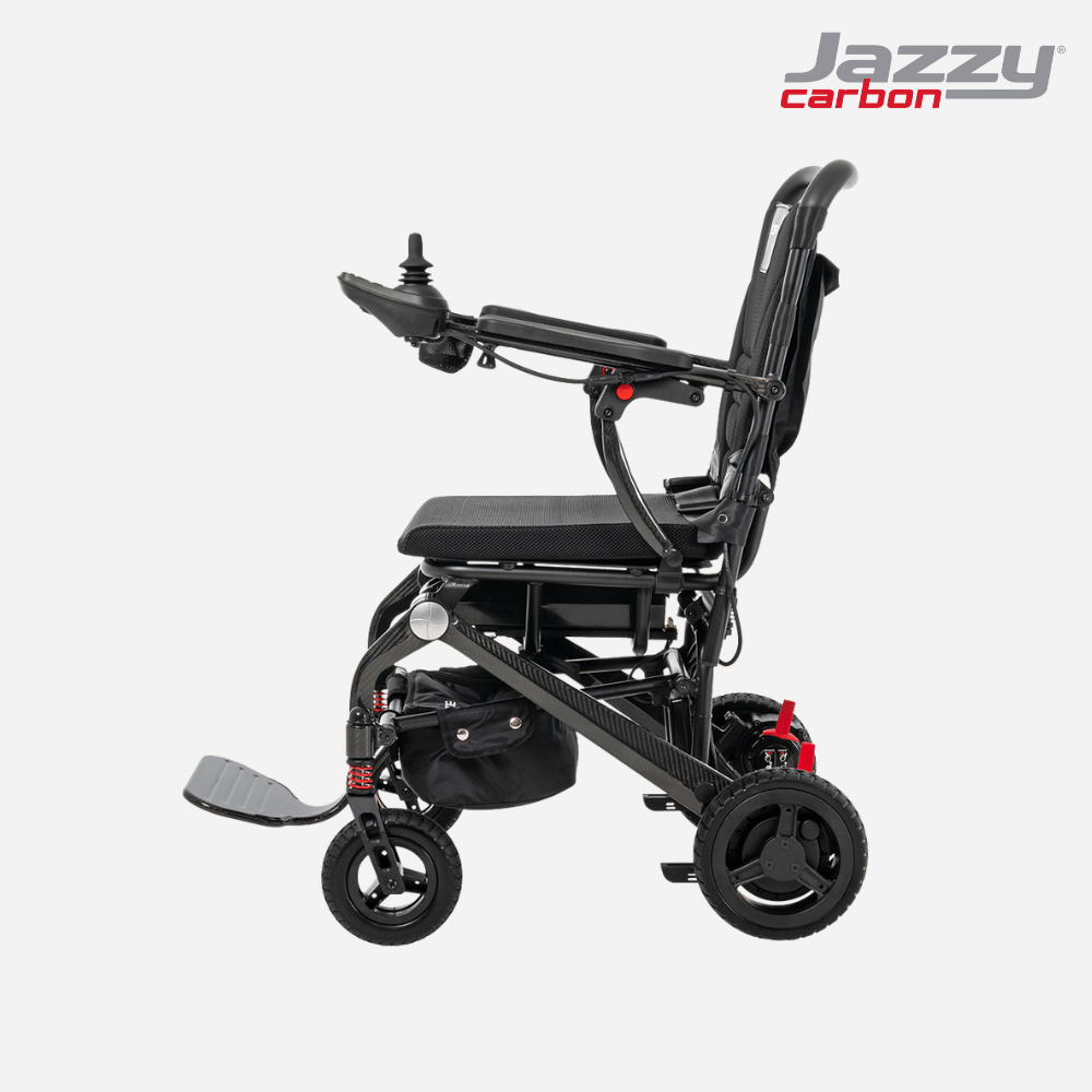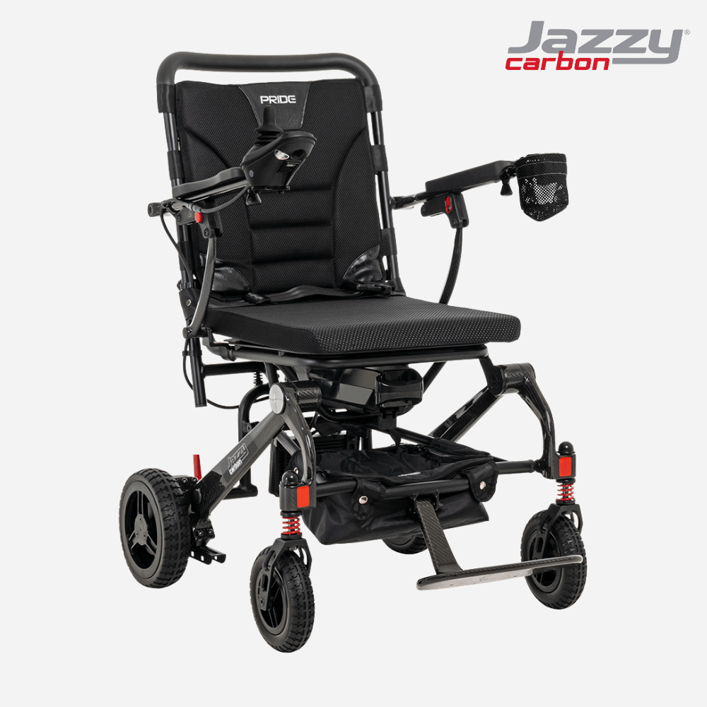 The Jazzy Carbon is the epitome of portable power. Crafted with a lightweight carbon fiber frame, this folding power wheelchair is designed for those who value both style and substance.