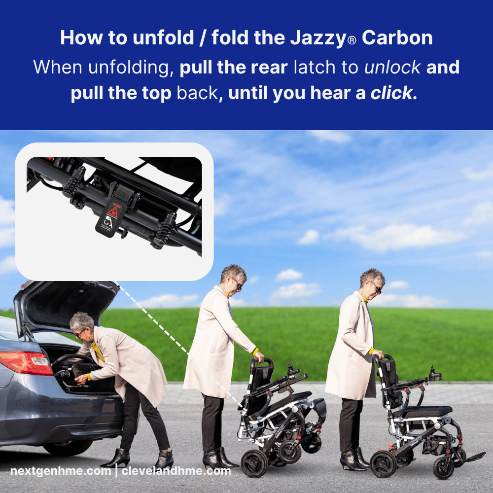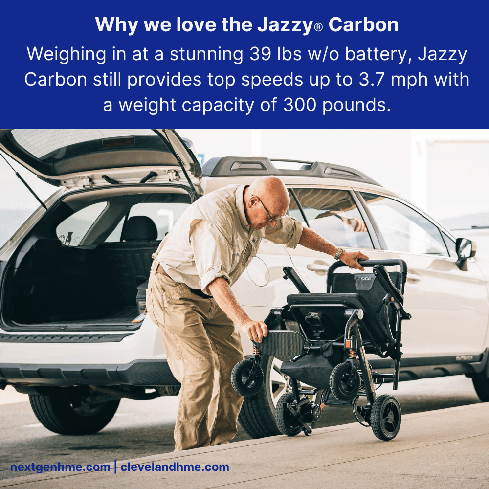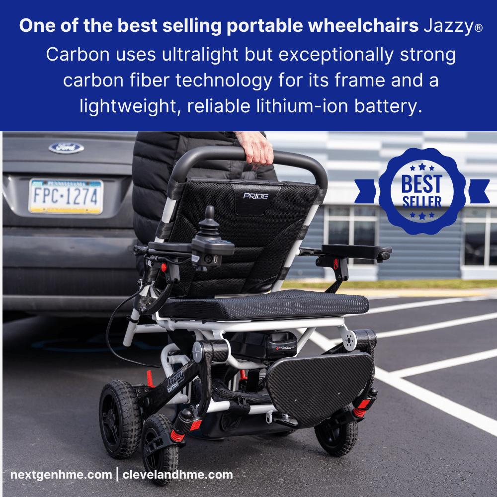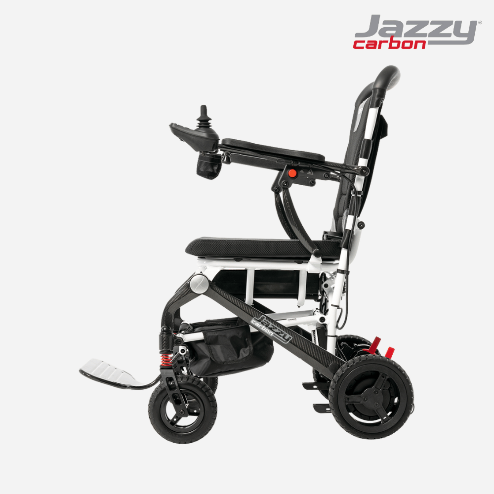 The Jazzy Carbon is the epitome of portable power. Crafted with a lightweight carbon fiber frame, this folding power wheelchair is designed for those who value both style and substance.