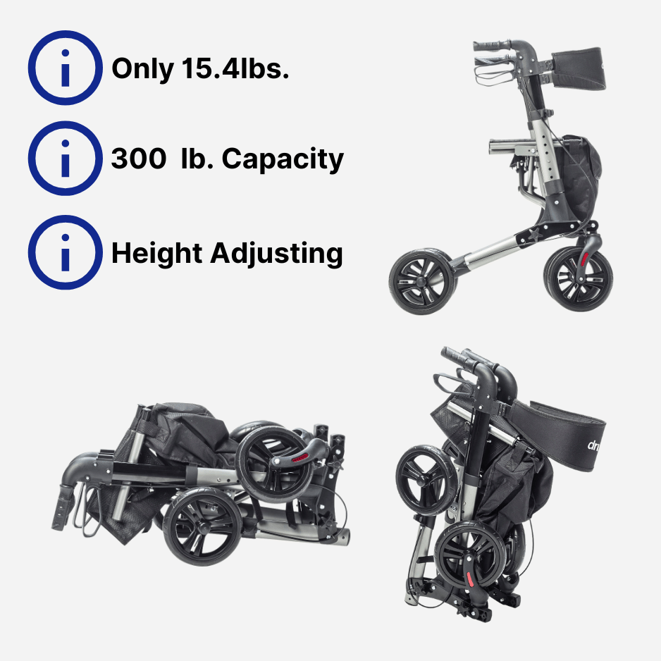 The Compact Folding Rollator by Drive Medical offers the perfect balance of convenience, durability, and comfort. Built from lightweight aluminum and packed with thoughtful features, it’s ideal for users who value both portability and reliability.