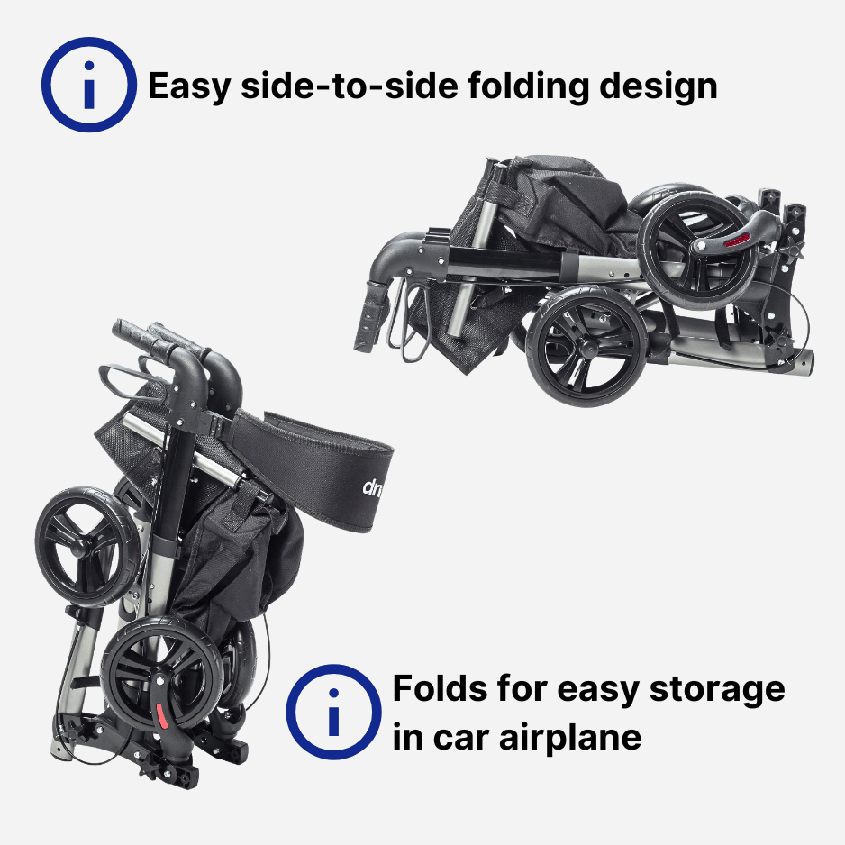 With a side-to-side fold for daily use and a compact fold for storage or travel, this rollator is designed to go wherever life takes you.