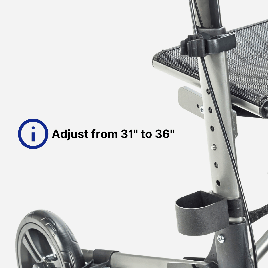 - Adjustable handle height (31"–36") for a comfortable, customized fit