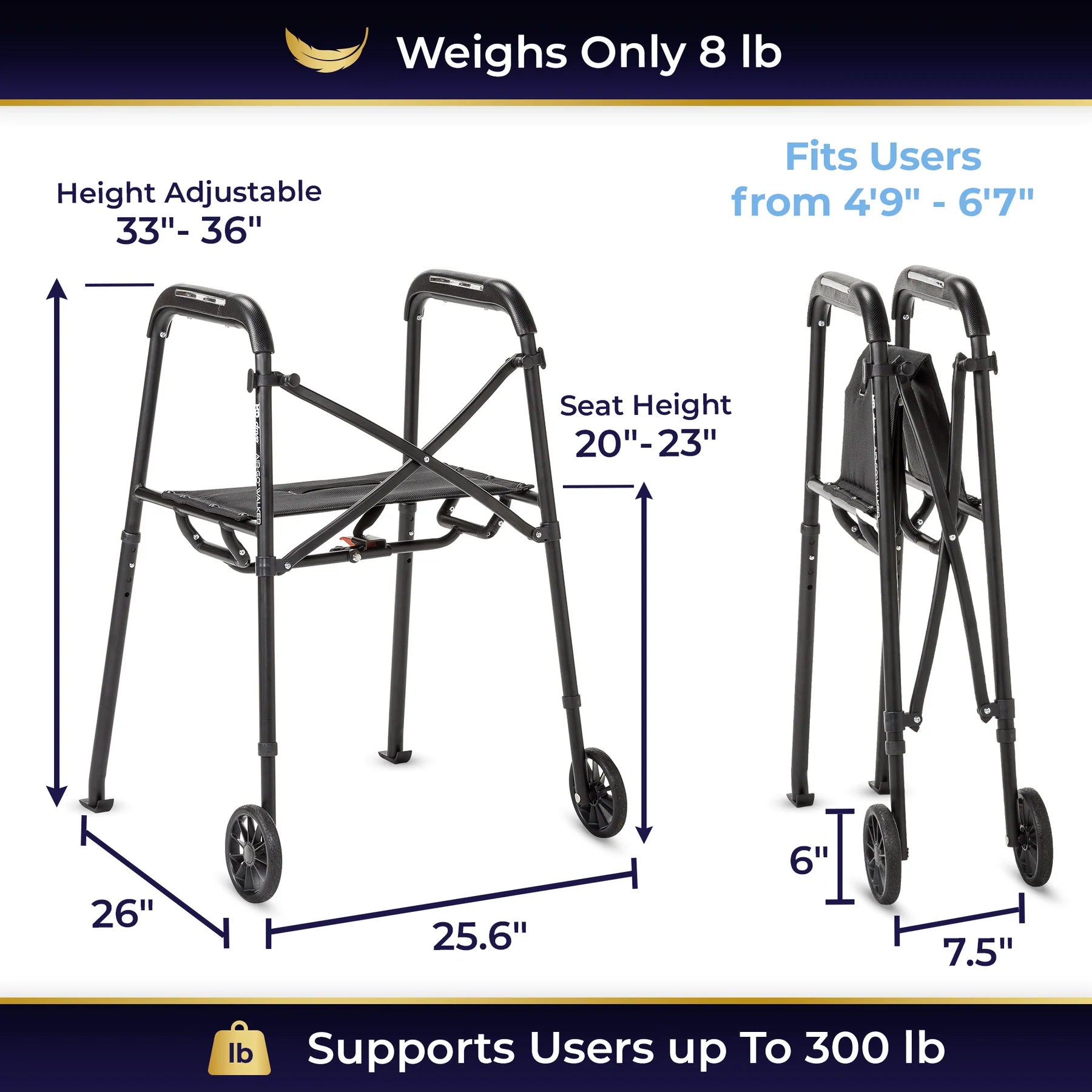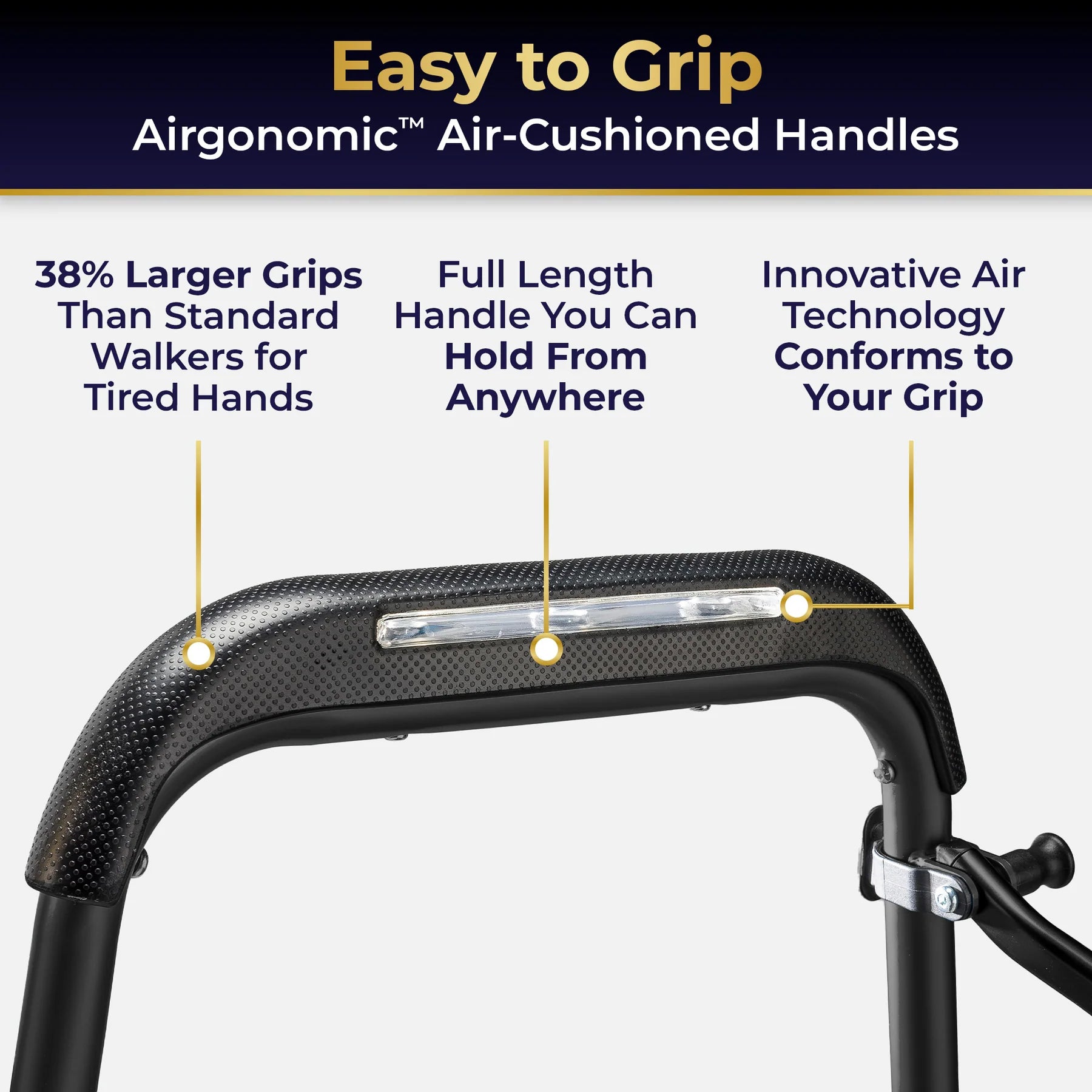NEW! Drive Medical Air-Go™ Walkerw/ Seat, Airgonomic™ Air Bladder Grips, 8 lbs., Light, Easy to Fold Frame