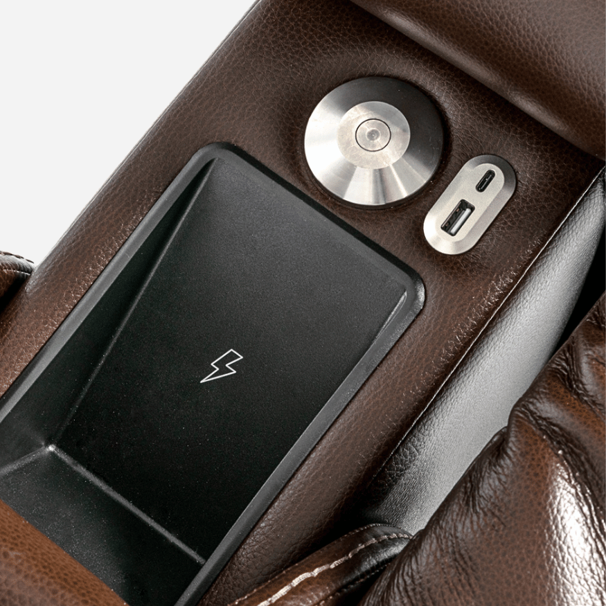 Tilt technology elevates your legs above your heart, creating a true zero-gravity sensation for ultimate comfort. Built-in massage and heat functions provide targeted relief, while a hideaway wireless charger and cup holder add modern convenience.