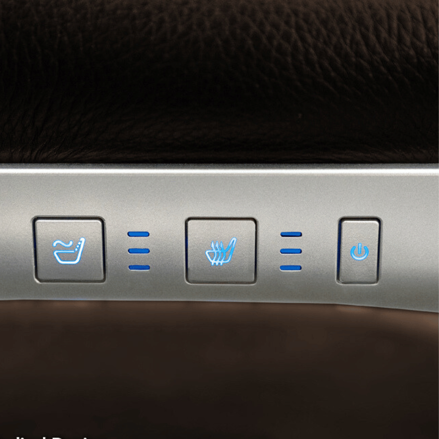 - Tri-Zone Heat System with heating pads in shoulders, lumbar, and seat