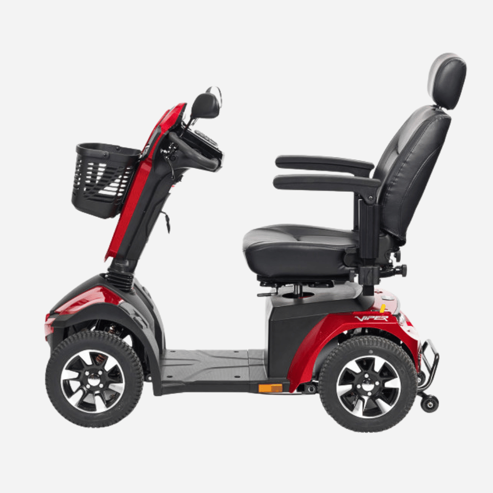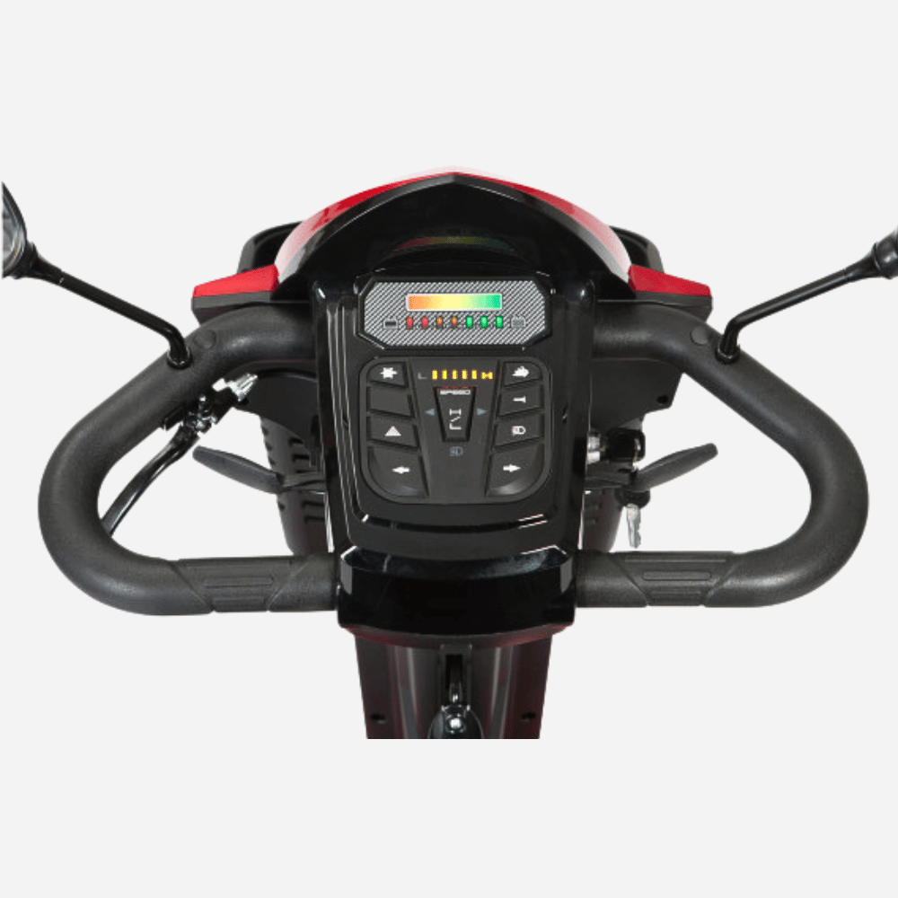 The Panther scooter offers modern styling and a host of excellent features resulting in a smooth and comfortable driving experience. Just some of these great features include one touch infinite tiller adjustment and delta controls for easy steering and throttle control, a plush Captain’s Seat that is height adjustable and features a reclining backrest with adjustable headrest, 14" alloy wheels on front and rear suspension for a smooth ride on all terrain, extra bright LED headlights and turn signals, dual rear view mirrors, and a large front basket with carry handle. For the ultimate driving experience don’t settle for anything less than the Panther.