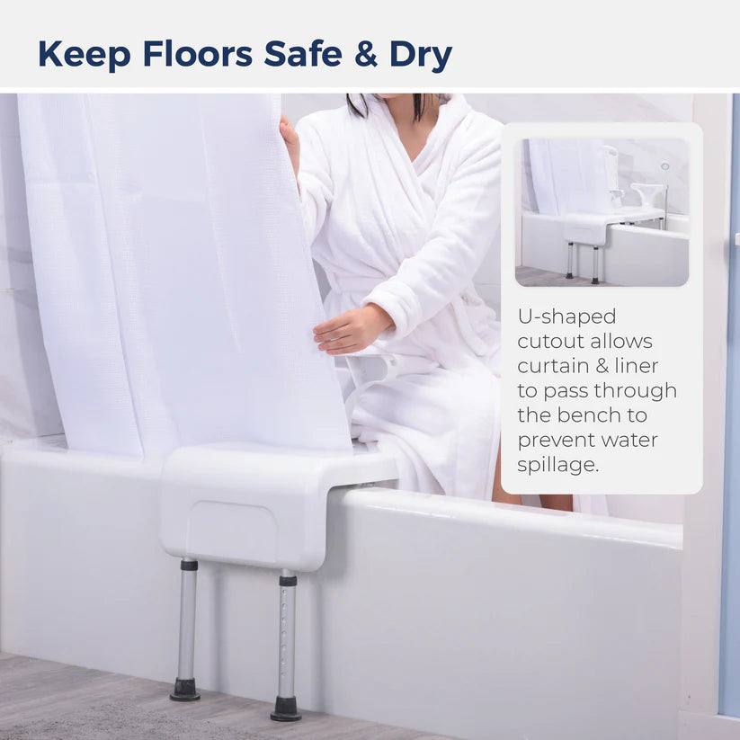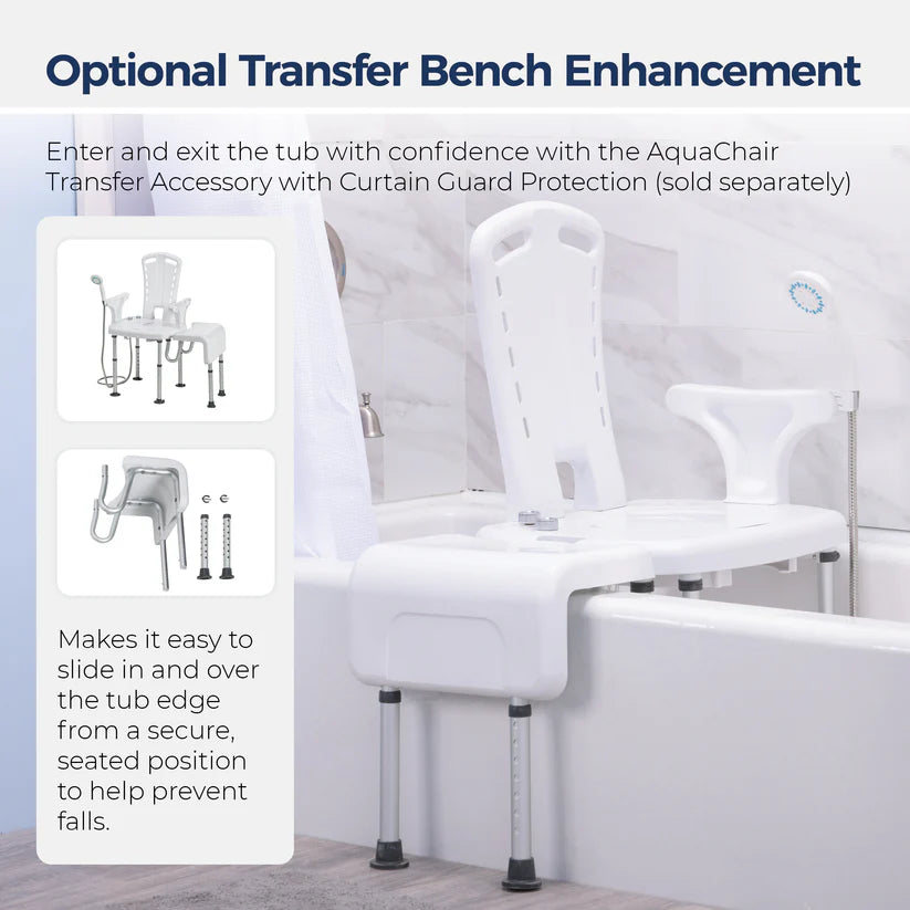 The sturdy shower seat provides stable support during bathing while promoting independence and dignity. Pair with the optional PreserveTech™ Aquachair Transfer Accessory with Curtain Guard Protection (Item # RTL12A004-TR) to enhance safety during transfers and add privacy screening.