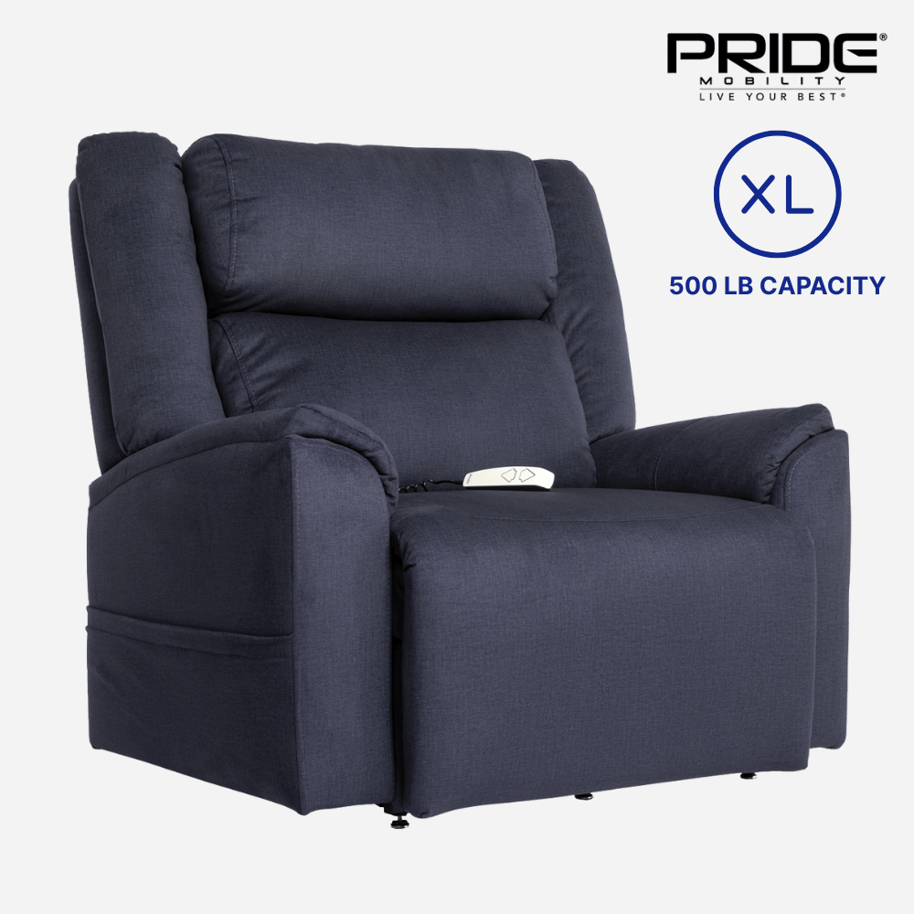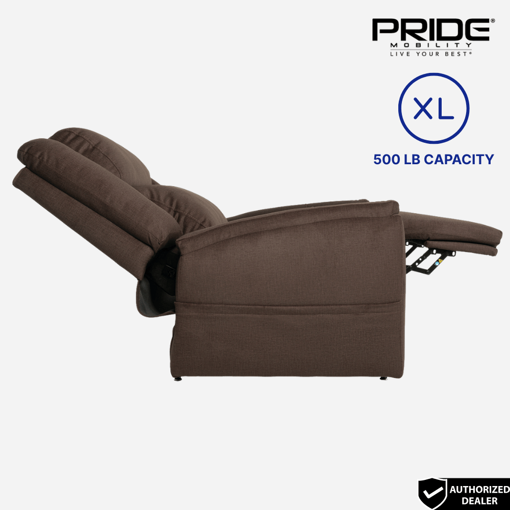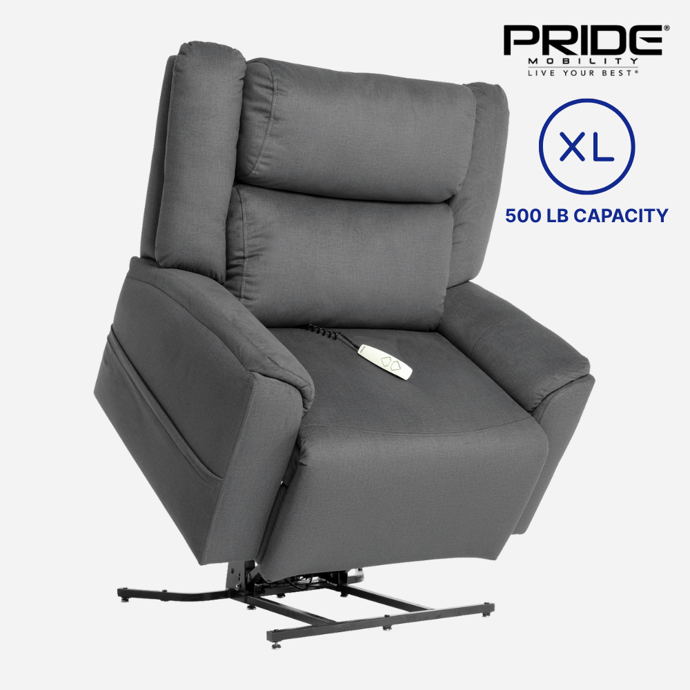 The Pride Mobility Evolution Lift Chair in Extra Large is designed for users who need superior support, comfort, and durability. This infinite-position recliner features a powerful 500lb weight capacity, extra-wide seating, and reinforced construction. With an overstuffed biscuit-style backrest, extended footrest, and full-body support, the Evolution XL is ideal for users seeking a reliable lift chair with ample room and premium comfort.