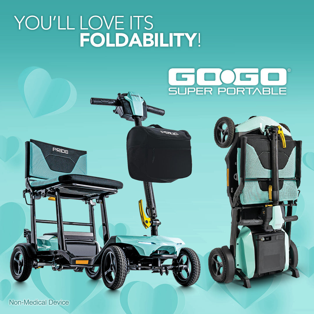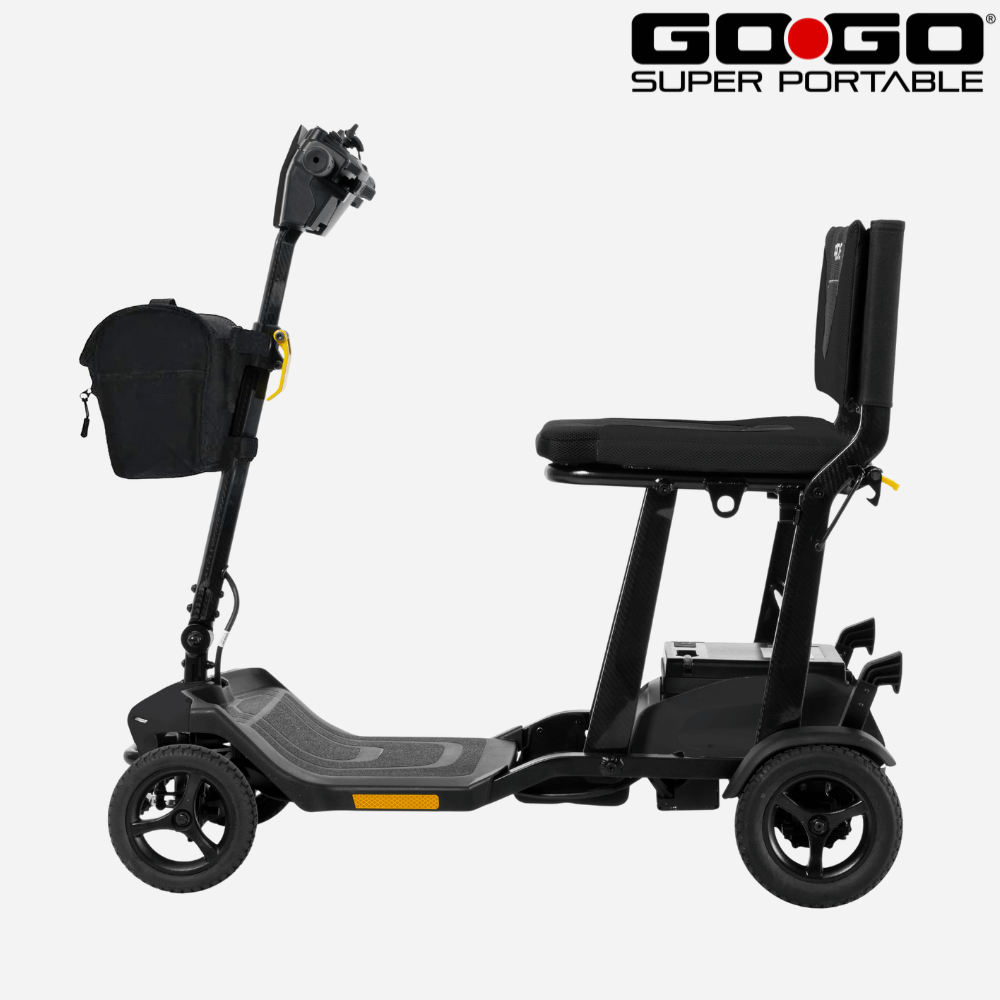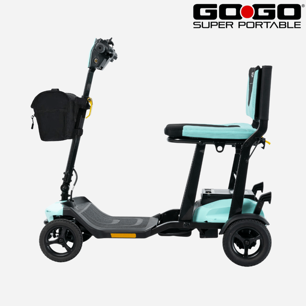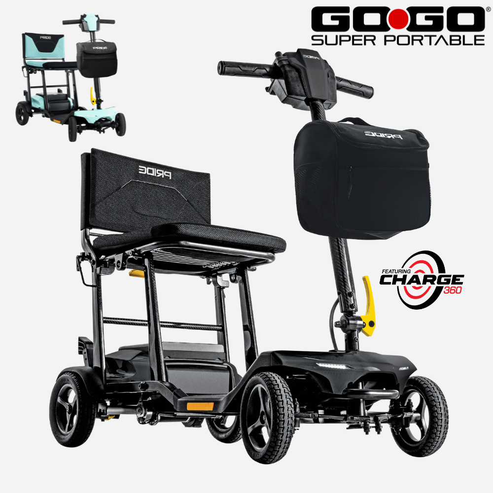 The Pride Mobility Go Go Super Portable Scooter is a lightweight, compact mobility solution designed for maximum convenience. With Charge360 magnetic charging technology, this scooter provides hassle-free recharging, and its ultra-portable design makes it perfect for travel.