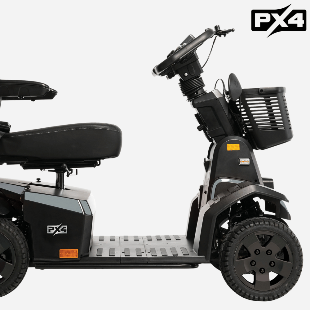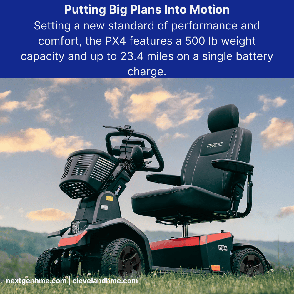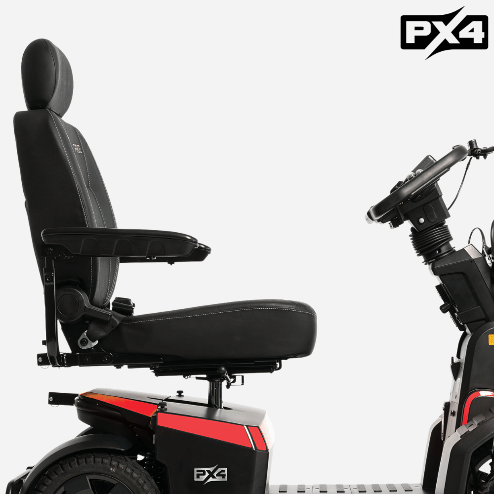 Enter the PX4, the latest bold innovation from Pride Mobility, and your conduit for charting out new destinations. It boasts a 500-pound weight capacity and it doesn’t hold it back from ramping up to a top speed of 9.3 mph.