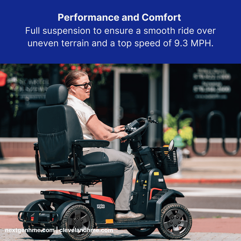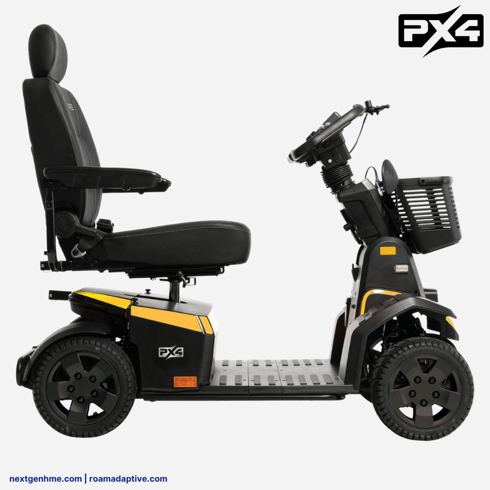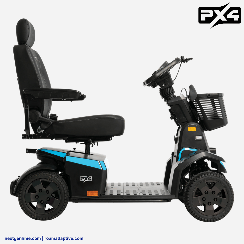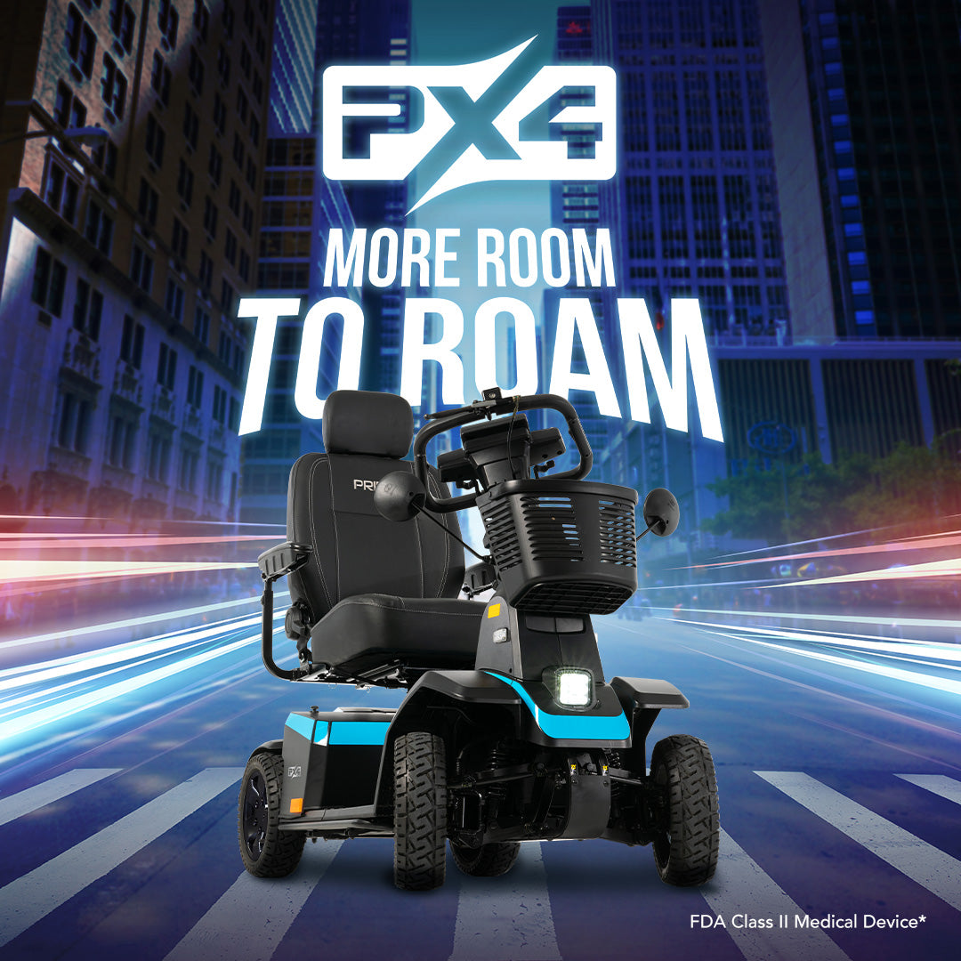 Enter the PX4, the latest bold innovation from Pride Mobility, and your conduit for charting out new destinations. It boasts a 500-pound weight capacity and it doesn’t hold it back from ramping up to a top speed of 9.3 mph.