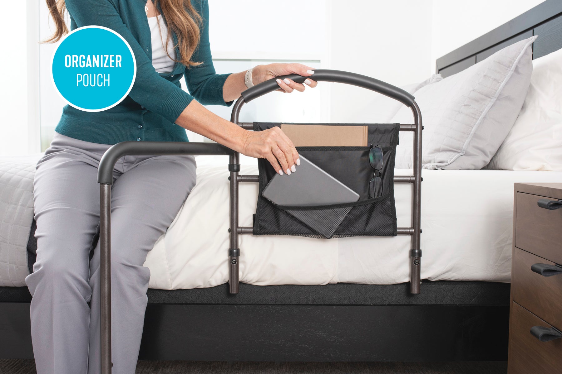- Organizer Pouch: Store small items in an easily accessible location next to your bed inside the included storage pouch.