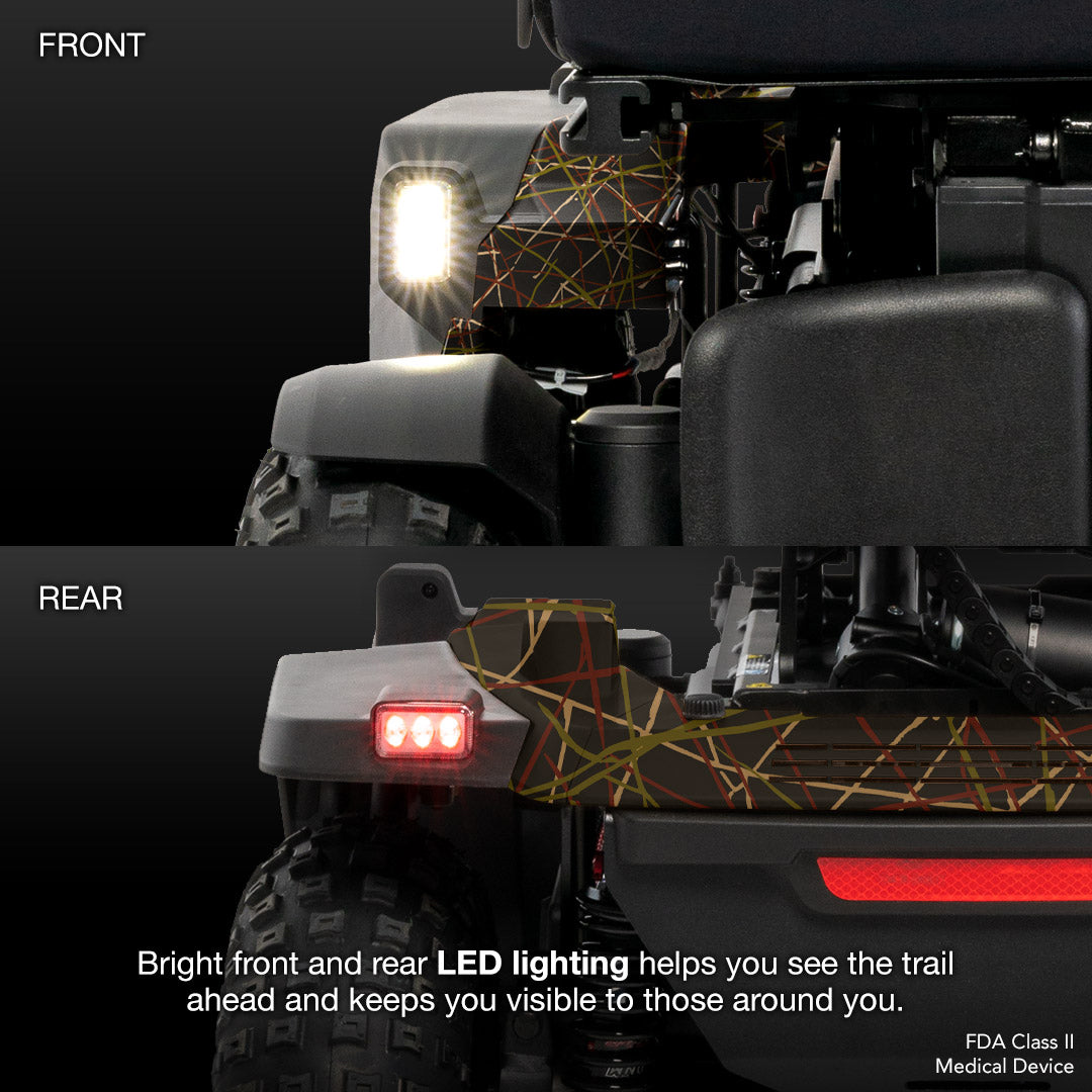 Quantum® Outback Off Road 4x4 Power Wheelchair with Optional TRU-Balance® 3 Power Positioning Systems, Integrated SRS (Smooth Ride Suspension), 15" Tires, Quantum® Backup Camera, LED Lighting Package,