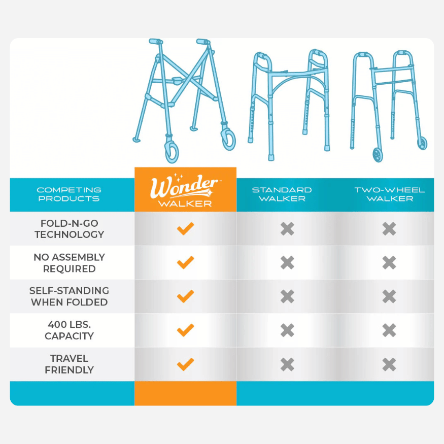 The Stander Wonder Walker Lite is the ultimate solution for individuals seeking a lightweight, compact, and travel-friendly mobility aid. Weighing just 6 pounds and folding to a fraction of its size, it’s the most compact walker on the market—perfect for everyday mobility and on-the-go lifestyles. Whether you’re recovering from surgery, navigating tight indoor spaces, or traveling by car or plane, the Wonder Walker is designed to go wherever life takes you.