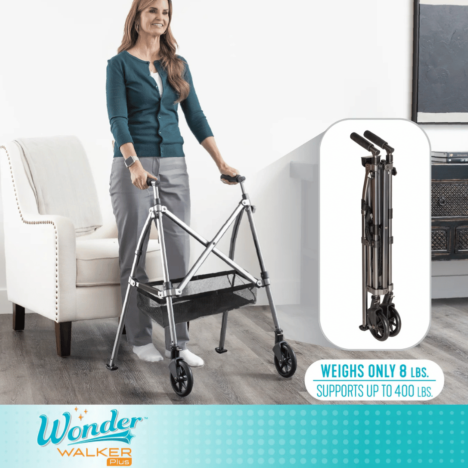 The Stander Wonder Walker is the world’s most compact folding walker designed to go wherever life takes you. Weighing just 8 lbs and supporting up to 400 lbs, it folds four times smaller than the average walker—making it the perfect choice for travel, home use, or on-the-go mobility.